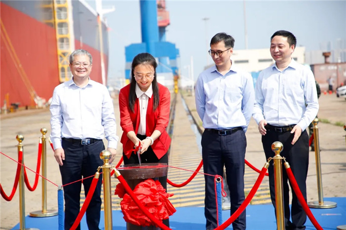 儀式現場由北船重工副總經理鮑會勇主持命名暨交船儀式,北船重工總經理谷克超、上海船舶研究設計院黨委書記王麟、中國船級社青島分社總經理朱永實、勞氏船級社全球首席運營官Mark Darley、香港明華船務有限公司副總經理李霖、工銀租賃航運金融事業部執行總經理郭芳萌先后致辭,工銀租賃項目與投資審批部副總經理高潔將本船命名為“ORE CHONGQING”并為其砍纜。