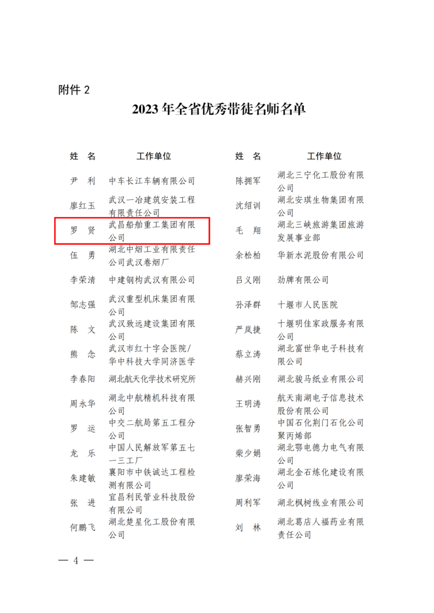 湖北省優秀帶徒名師