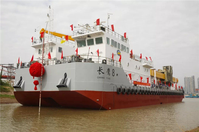 9月20日上午8點58分,由武船集團船舶公司為長江航道局建造的鏟斗式挖泥船在武昌總部順利下水。