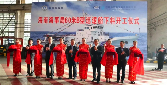 2018年10月26日上午,海南海事局60米級B型海事巡邏船開工活動在武船集團船舶公司內業(yè)車間舉行,武船集團副總經(jīng)理王渭齡致辭,海南海事局副局長效國良發(fā)表講話并下達了開工指令。