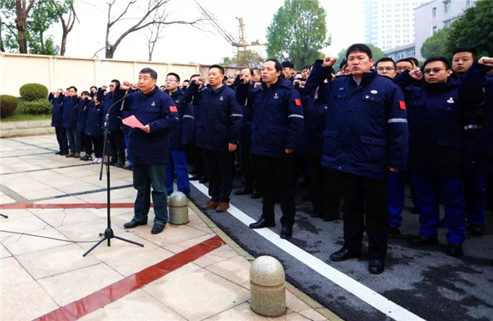 上午8時(shí)許,兩百余名黨員面向鮮紅的黨旗,在公司黨委書記、董事長(zhǎng)陳?降拇?領(lǐng)下,緊握右拳,以飽滿的精神狀態(tài)、洪亮的聲音莊嚴(yán)宣誓,表明自己為黨和國(guó)家奮斗終身的堅(jiān)定決心。