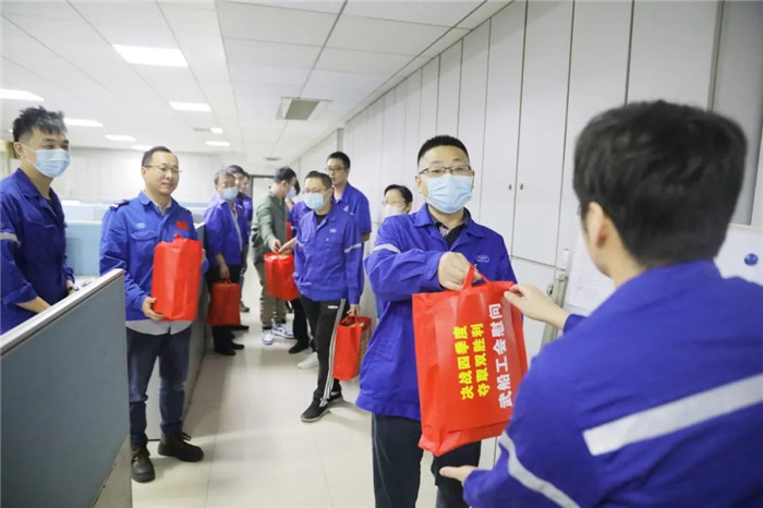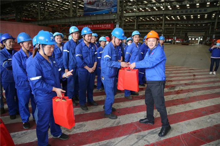 目前,因在制產(chǎn)品周期緊任務(wù)重,為沖刺2020年度目標(biāo)任務(wù),中國(guó)船舶武船集團(tuán)干部職工雙節(jié)期間仍然堅(jiān)守工作崗位,奮戰(zhàn)在重點(diǎn)產(chǎn)品、重大節(jié)點(diǎn)施工現(xiàn)場(chǎng)。10月3日,公司領(lǐng)導(dǎo)王渭齡、田軍、唐瀅及公司工會(huì)分別在武昌、雙柳廠區(qū)慰問國(guó)慶、中秋雙節(jié)期間加班的一線職工和技術(shù)管理人員,表達(dá)公司黨委、行政和工會(huì)對(duì)各地節(jié)日加班職工的關(guān)心問候和祝福,并送去慰問品。