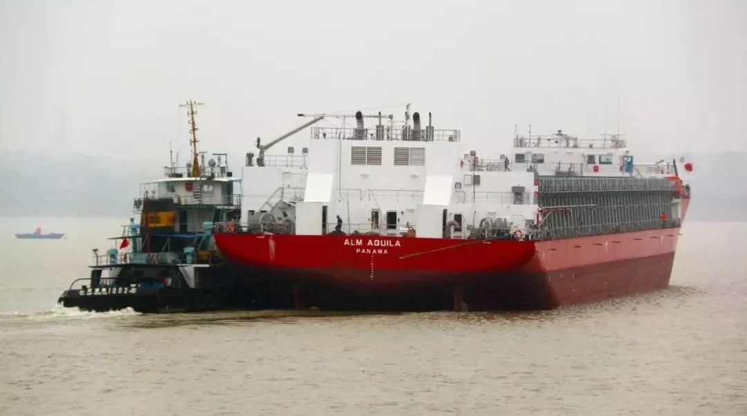 ▲新型13000噸甲板運輸船2號船離廠
