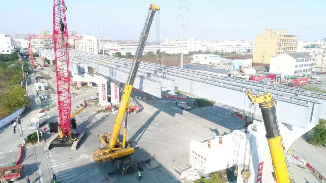 ▲2019月6月4日 首件鋼板梁架設(shè)