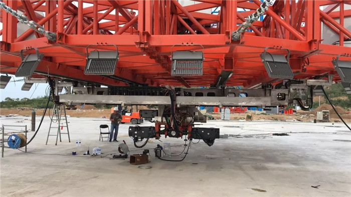2019年7月初,“隨動(dòng)盤”在武船集團(tuán)重裝公司廟山基地順利完成組裝及檢測(cè)實(shí)驗(yàn),并立即拆分裝箱發(fā)往懷來(lái)。“隨動(dòng)盤”上安裝的導(dǎo)軌平面度公差達(dá)到0.1mm、平行度公差達(dá)到0.15mm ,各項(xiàng)檢測(cè)數(shù)據(jù)滿足工藝精度及試驗(yàn)要求。