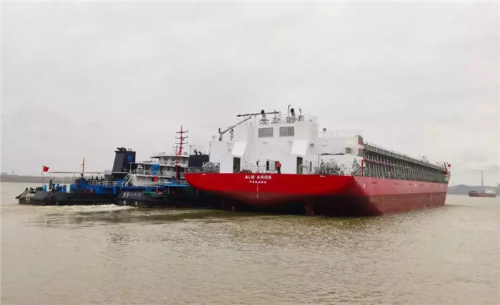 11月25日,由武船集團船舶公司承建的新13000噸甲板運輸船4號船順利離廠,前往南通碼頭進行最后的交付工作,標志著新13000噸甲板運輸船項目在武船雙柳基地的建造任務圓滿結束。