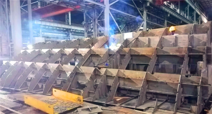 該首制分段為單殼體底部分段,結(jié)構(gòu)形式與往期產(chǎn)品相比變化較大,且工藝復(fù)雜。另外,本次施工屬異地作戰(zhàn),無論在資源調(diào)配還是與相關(guān)方的溝通協(xié)調(diào)等方面都存在不小的難度,而這些都是擺在項(xiàng)目部面前的巨大考驗(yàn)。為應(yīng)對上述工作難題,項(xiàng)目部高度重視,決心不惜一切代價(jià)也要按期、保質(zhì)完成生產(chǎn)任務(wù)。在項(xiàng)目部總指揮凌偉、副總指揮李強(qiáng)的統(tǒng)一領(lǐng)導(dǎo)下,項(xiàng)目部迅速加大了人力、物力及各項(xiàng)設(shè)備設(shè)施的投入力度,通過不斷優(yōu)化細(xì)化生產(chǎn)組織,制定科學(xué)有效的日生產(chǎn)計(jì)劃并狠抓計(jì)劃的落實(shí),不斷加強(qiáng)對現(xiàn)場的溝通和協(xié)調(diào)等舉措,有效解決了工作中存在的諸多困難,打通了生產(chǎn)瓶頸,達(dá)到了“日事日畢、日清日高”的效果。