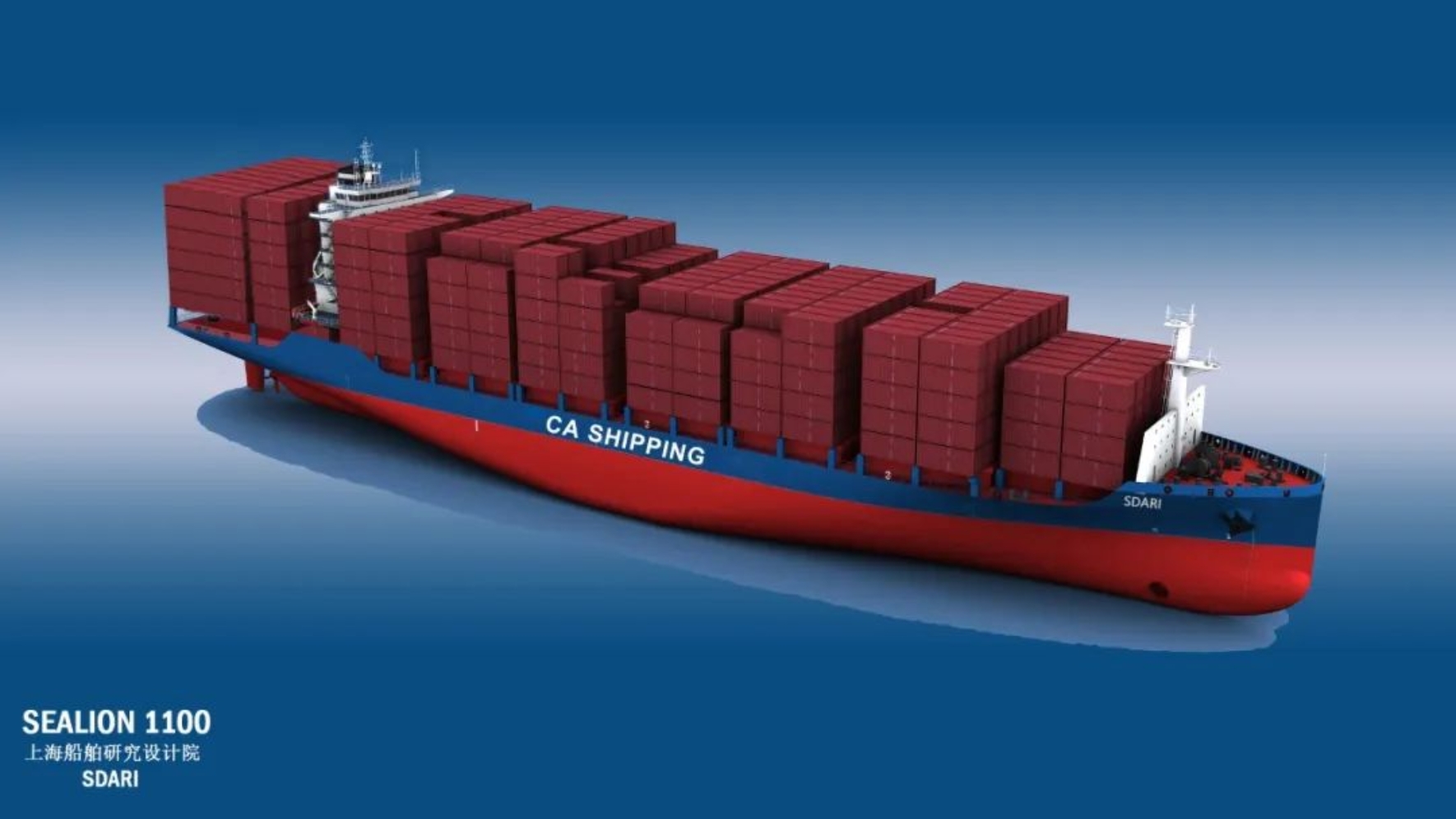1100TEU集裝箱船系列船舶共計4艘,均由上海船舶研究設(shè)計院設(shè)計。該系列船型總長147.90米、型寬23.25米、型深11.50米,設(shè)計吃水7.30米,設(shè)計載重噸9950噸,設(shè)計航速18.5節(jié),適用于干柜、冷柜集裝箱的海上運(yùn)輸。