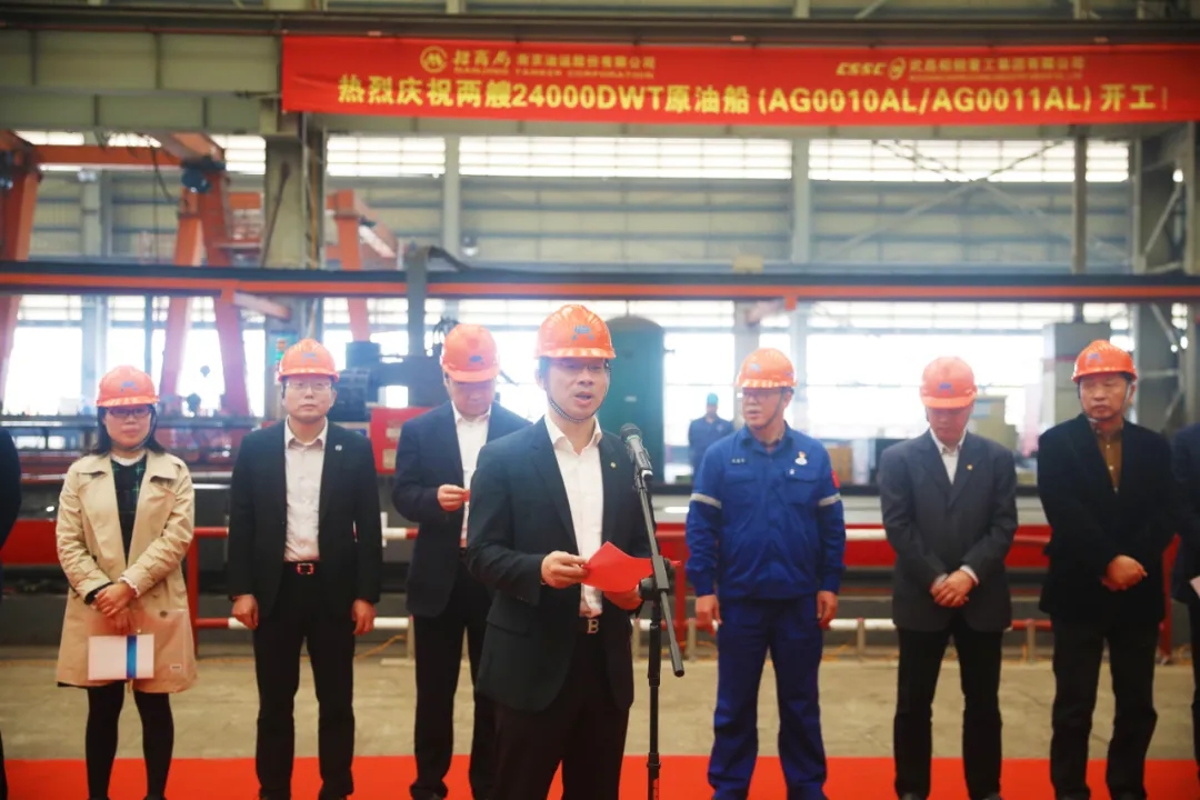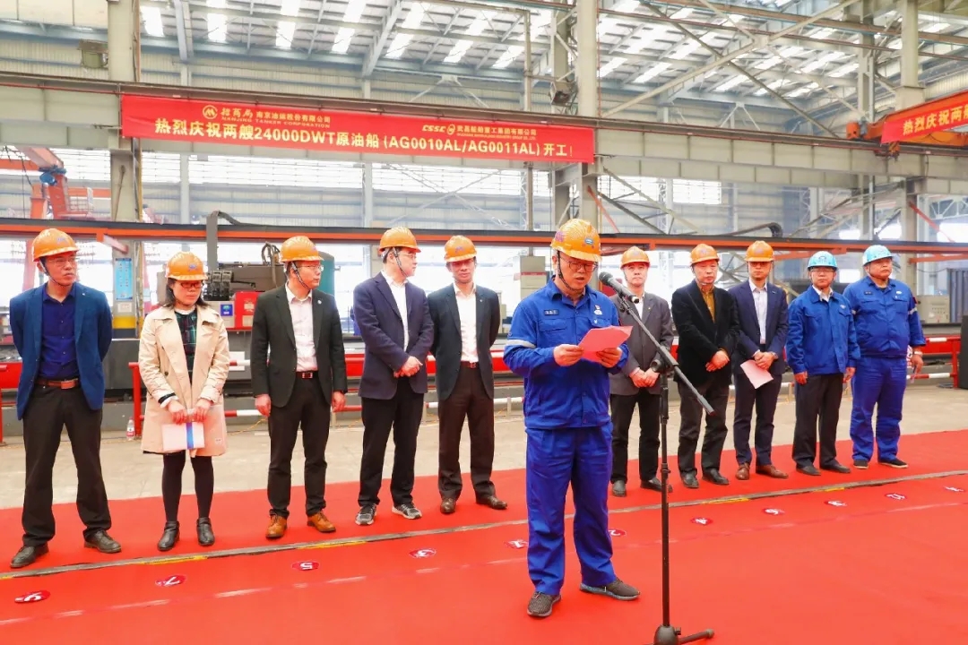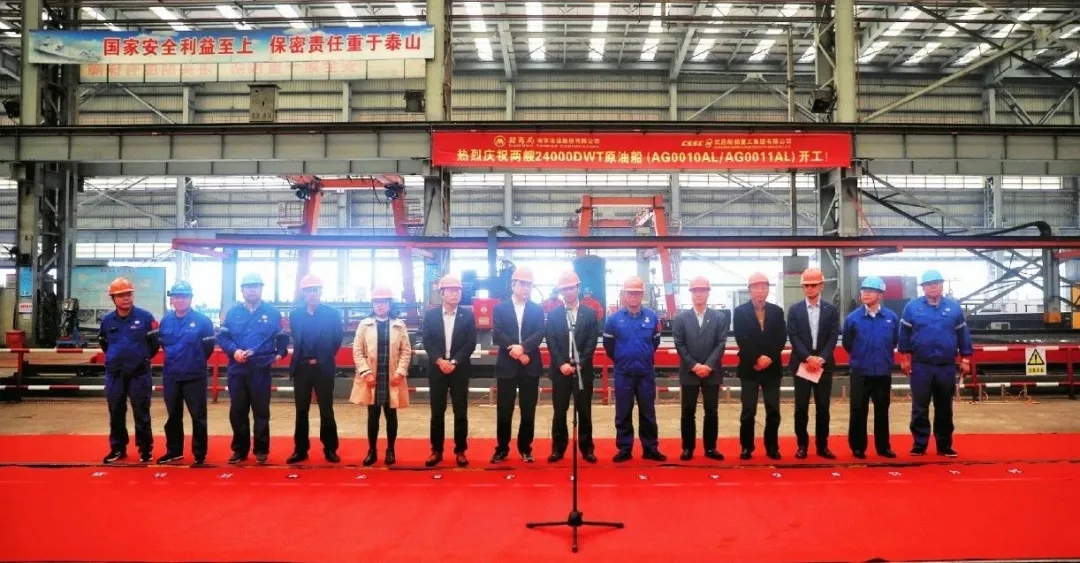 2020年10月30日10時(shí)18分,由中國(guó)船舶武船集團(tuán)為招商局南京油運(yùn)股份有限公司建造的兩艘24000DWT原油船在雙柳廠區(qū)順利開(kāi)工。招商局南京油運(yùn)股份有限公司總經(jīng)理周斌、中國(guó)船級(jí)社武漢分社副總經(jīng)理唐建、中國(guó)船舶及海洋工程設(shè)計(jì)研究院所長(zhǎng)助理朱建璋、武昌船舶重工集團(tuán)有限公司副總經(jīng)理姚勝華等參加開(kāi)工儀式。