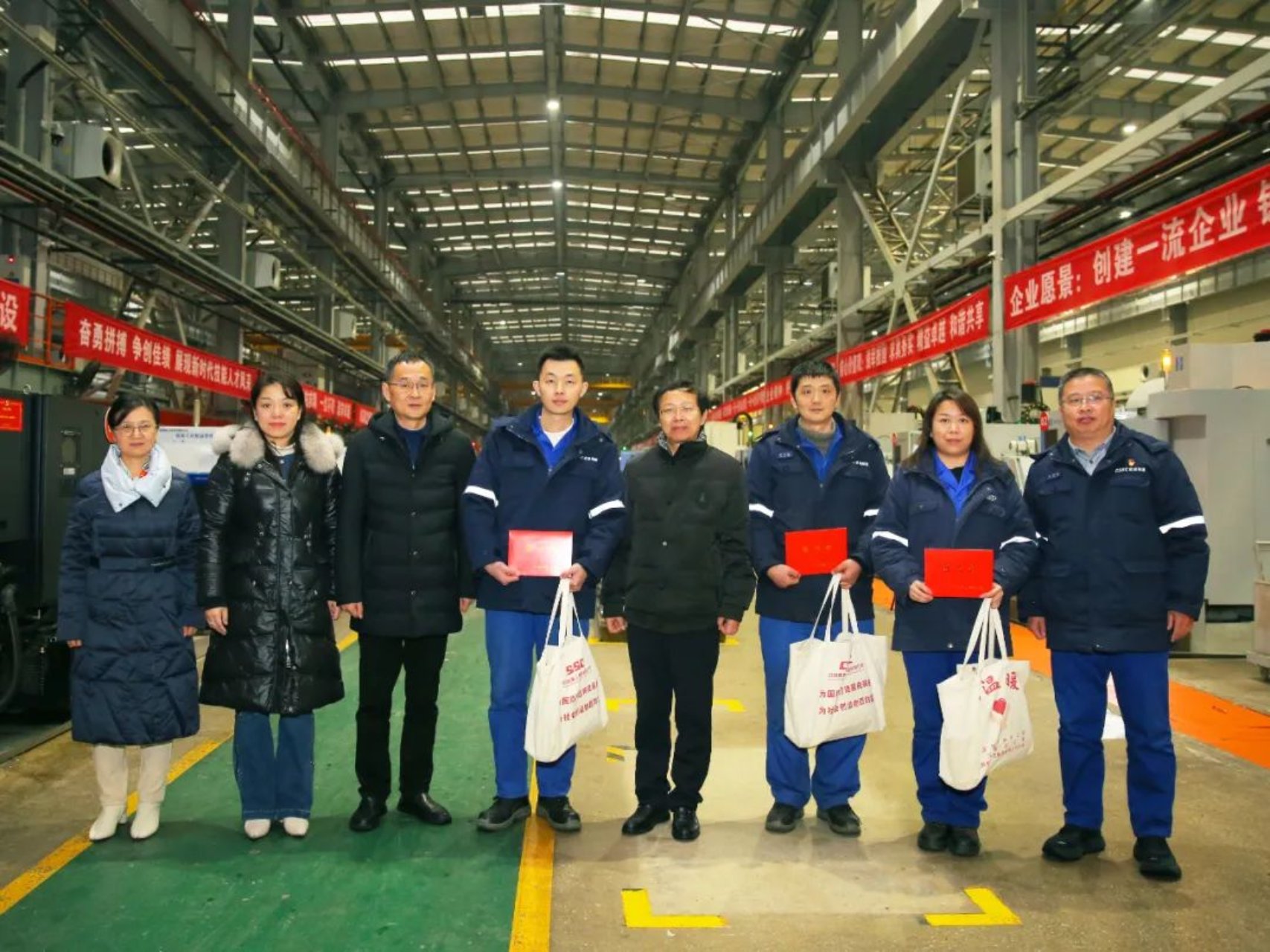 秦少相主席一行在船臺總裝區(qū)、數(shù)控加工區(qū)等生產(chǎn)區(qū)域,親切慰問了公司一線職工代表,送上慰問金和慰問品,詢問了大家的工作及生活狀況,對大家立足崗位、拼搏奮斗,為國防建設(shè)作出的重要貢獻(xiàn)表示感謝,期望大家牢記初心使命,奮勇爭先,為全面推進(jìn)中華民族偉大復(fù)興作出新的更大貢獻(xiàn)。