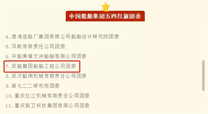 “中國船舶集團五四紅旗團委”榮譽稱號