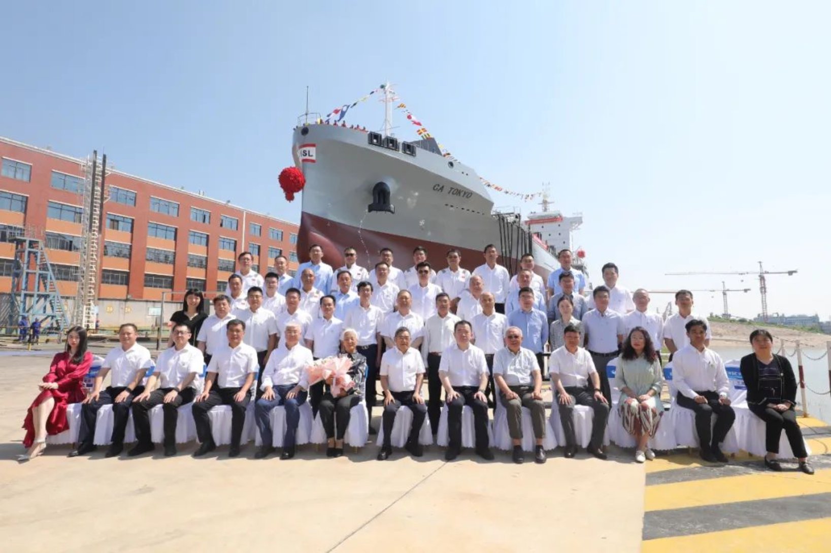 “CA TOKYO”輪教母韓梅,中國(guó)重工董事張相木,中國(guó)船舶租賃董事長(zhǎng)鐘堅(jiān),亞海航運(yùn)有限公司執(zhí)行董事楊向東,上海船舶研究設(shè)計(jì)院院長(zhǎng)呂智勇,日本船級(jí)社上海分公司總經(jīng)理水流昌克,興業(yè)金融租賃總裁助理張琦,武昌造船黨委書(shū)記、董事長(zhǎng)姜濤,船東,船檢,哥倫比亞船舶管理公司等相關(guān)單位領(lǐng)導(dǎo)和嘉賓共同見(jiàn)證了儀式。儀式由武昌造船黨委委員、副總經(jīng)理田軍主持。