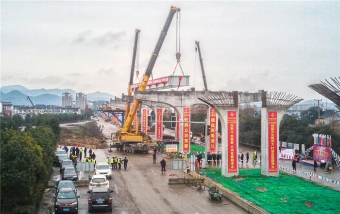 臺州路澤太高架TJ03標(biāo)鋼板梁首片梁架設(shè)成功