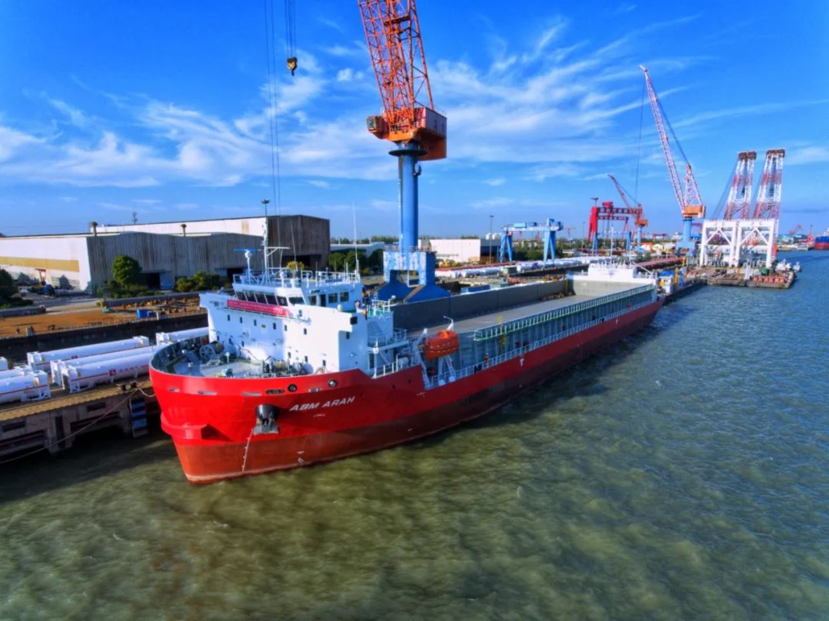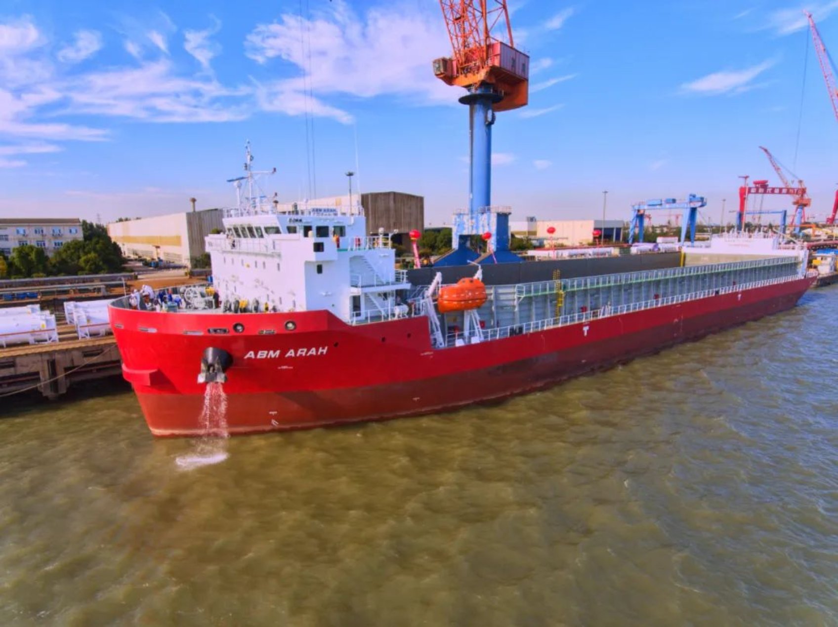2022年10月20日由中國船舶武船為印尼PT ABM公司建造的13300噸甲板運輸船3號船在中船澄西(泰州)出口碼頭順利交付。13300噸甲板運輸船3號船作為武船為該船東設計、建造的第11條船,也是第三代系列船的收官之作。