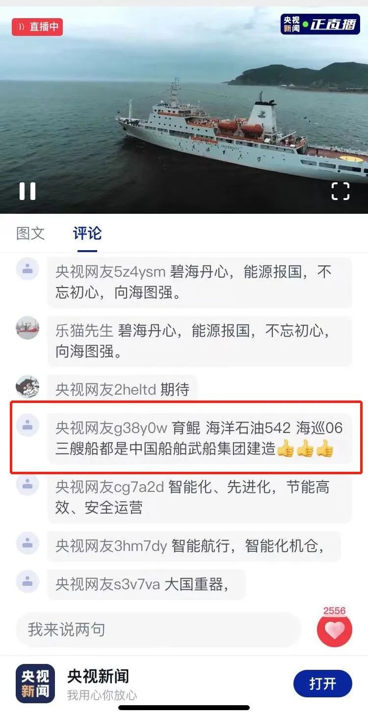 然而,大家可能不知道的是央視新聞“正直播”選擇在航海日當(dāng)天展示“海上黑科技”的三艘船舶背后有一個(gè)共同的名字——“武船造”