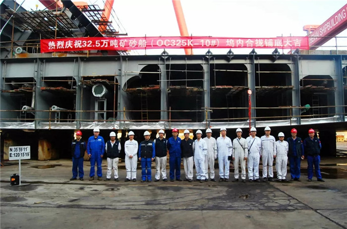 ▲32.5萬(wàn)噸礦砂船10號(hào)船鋪底儀式現(xiàn)場(chǎng)