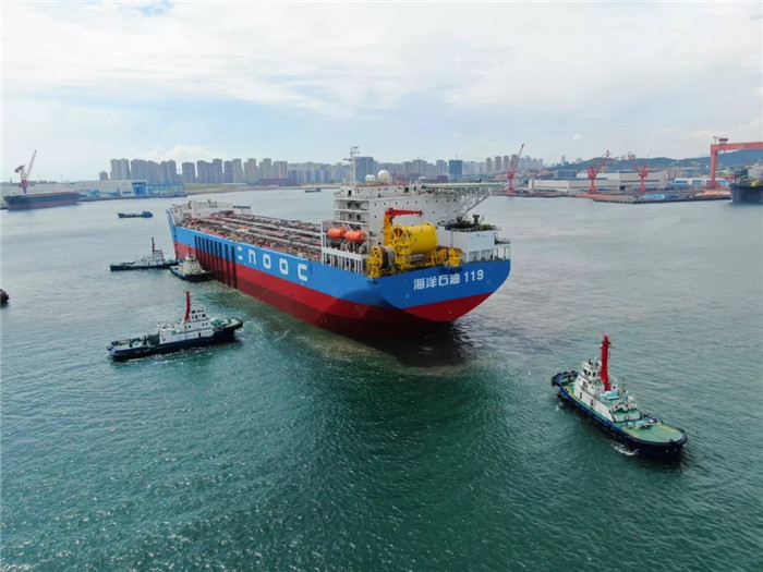 ▲9月3日上午,“海洋石油119”FPSO緩緩離開3號碼頭
