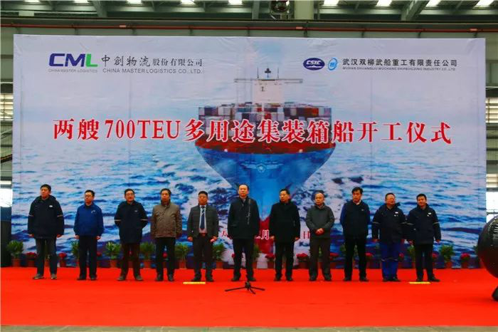 12月29日10時18分,由武船集團雙柳武船為中創(chuàng)物流青島遠大均勝海運有限公司建造的兩艘700TEU多用途集裝箱船,在雙柳基地順利開工。