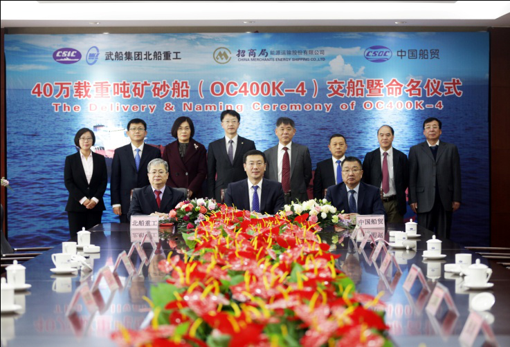 2月22日,武船集團(tuán)北船重工為招商局能源運(yùn)輸股份有限公司建造的第四艘新型40萬(wàn)噸礦砂船“明青”輪命名交付。這是北船重工今年交付的第1艘船舶,也是40萬(wàn)噸系列礦砂船中完工的第7艘船。