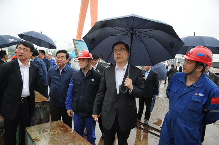 5月11日下午,山東省委常委、青島市委書記張江汀,市委常委、副市長王魯明,市委常委、西海岸新區黨工委書記、區委書記王建祥等領導一行到武船集團北船重工調研企業科技創新、發展海洋經濟等工作。
