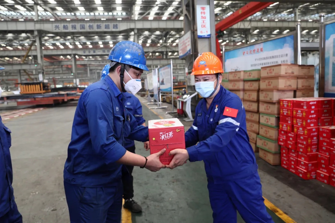 5月2日,公司領導田軍、姚勝華和工會負責人到設計研究院、軍船公司、船舶公司、模塊公司、船艇公司等設計、生產一線,親切慰問節日期間仍然堅守在崗位上的干部員工,并為大家送去飲料、面包等慰問品。感謝大家的辛勤付出,并希望廣大干部員工下最大決心,盡最大努力,大力弘揚勞動精神,克服艱難險阻,咬緊牙關,把時間趕回來,把生產進度搶回來。并特別叮囑要做好安全生產、嚴控產品質量,嚴格按照時間節點完成好各項任務。