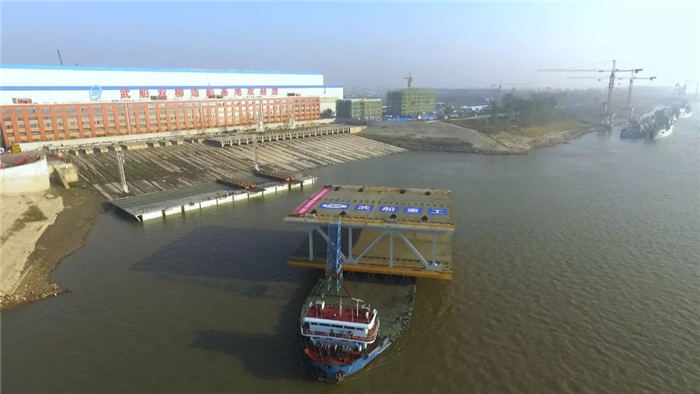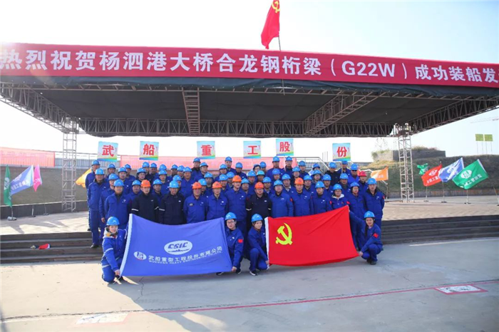 12月18日,世界最大跨度的雙層公路懸索橋?C?C楊泗港大橋合龍鋼桁梁在公司雙柳廠區(qū)裝船發(fā)運(yùn),這標(biāo)志著由武船重工股份承建的楊泗港大橋全橋51節(jié)鋼桁梁節(jié)段已全部發(fā)運(yùn)完畢。合龍鋼桁梁發(fā)運(yùn)儀式在船臺(tái)舉行,武船重工股份總經(jīng)理吳躍波,中船重工集團(tuán)首席技術(shù)專(zhuān)家、武船重工股份總工程師阮家順,副總經(jīng)理、工會(huì)主席姜海松,武船集團(tuán)群團(tuán)工作部、規(guī)劃部、雙柳武船、運(yùn)輸單位和公司參建代表共計(jì)60余人參加儀式。